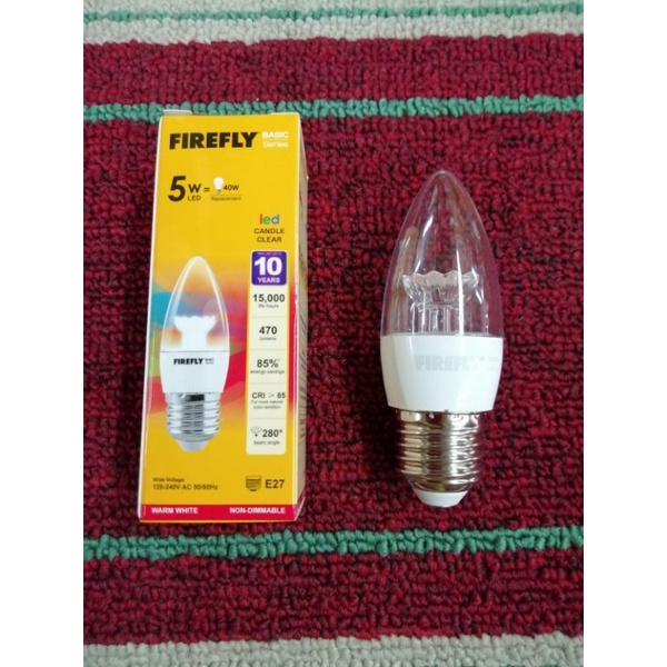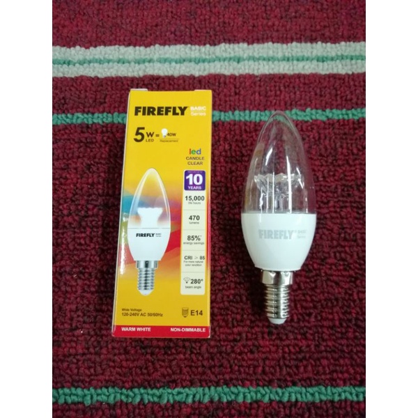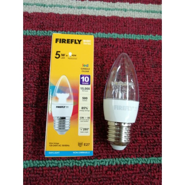 Firefly LED Candle Bulb Clear 5w E14 or E27 (Daylight=White Light / Warm White=Yellow Light)