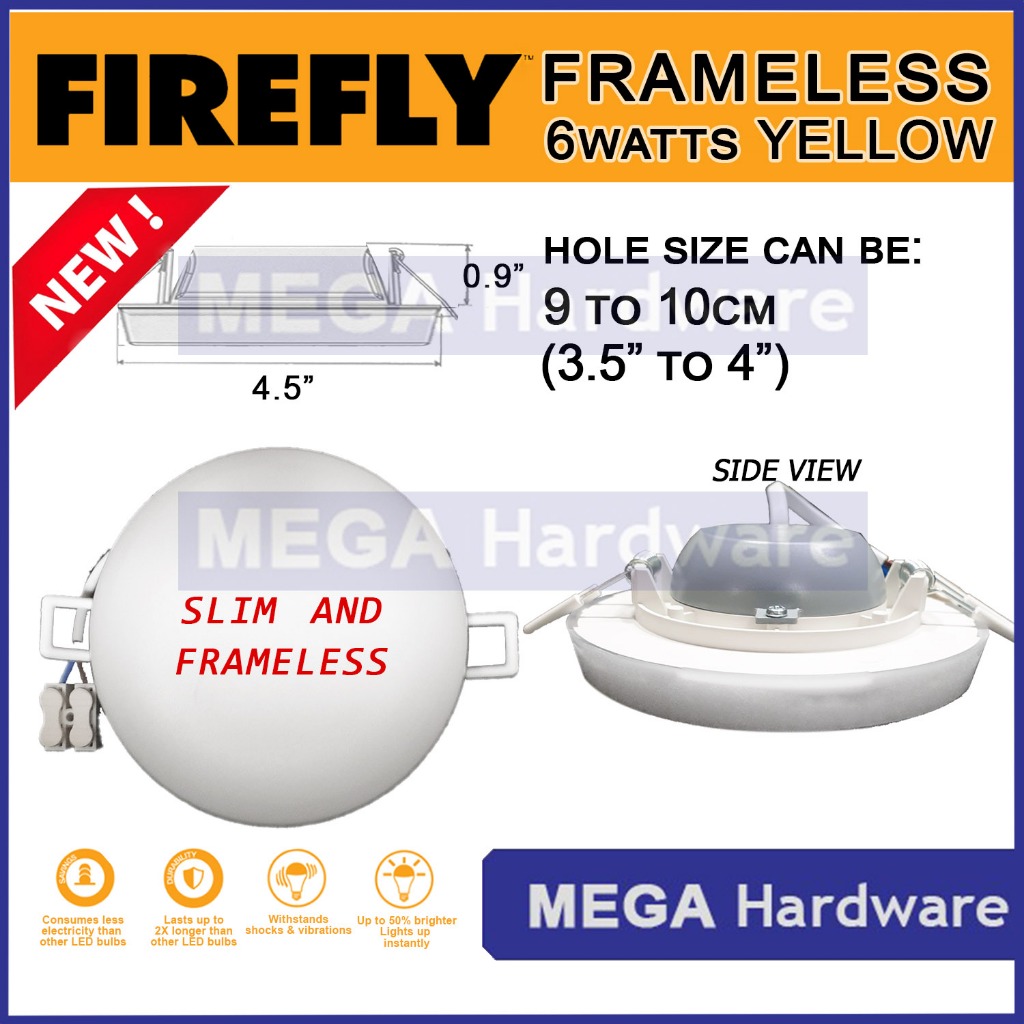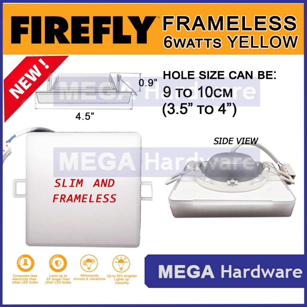 Firefly LED FRAMELESS Downlight 6W 9W Watts DAYLIGHT or WARM WHITE (SLIM BACKING)