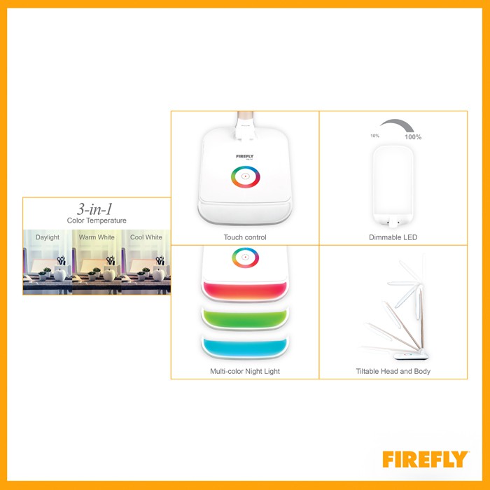 Firefly LED Tri-color Desk Lamp with Multicolor Night Light - FEL717