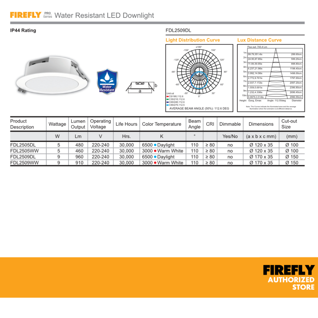 Firefly Pro Series Water Resistant LED Downlight IP44