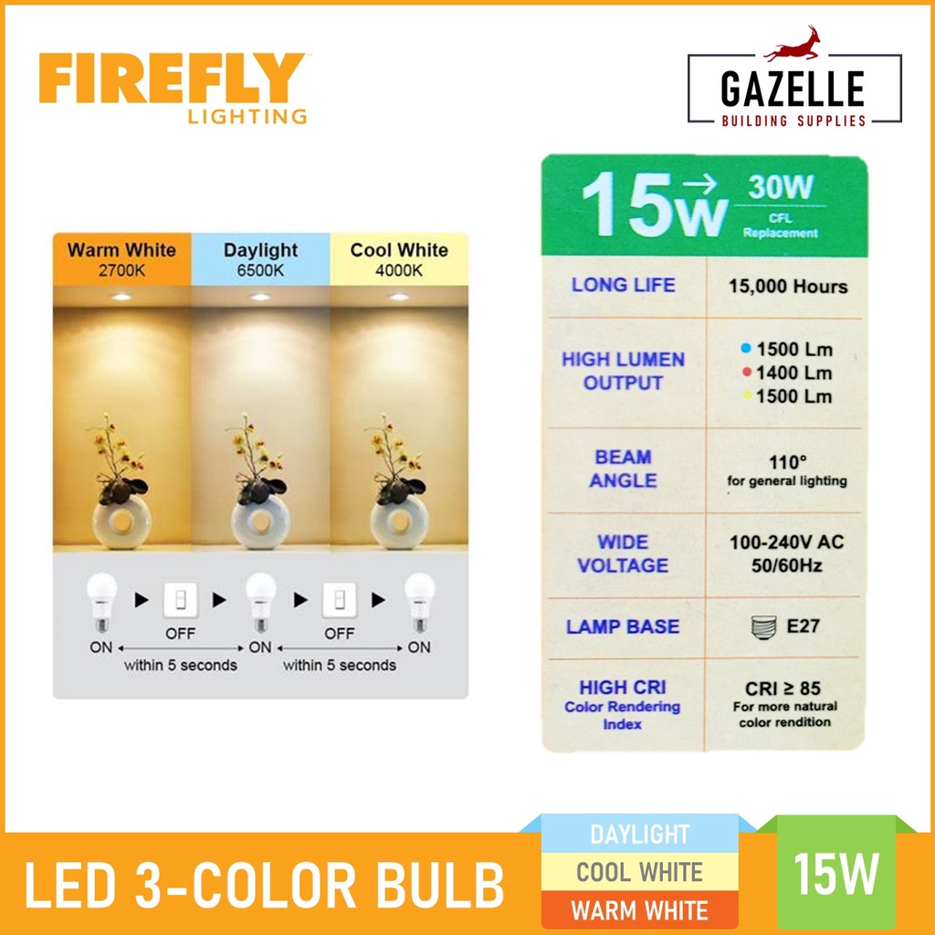 Firefly Tri Color LED UFO Ceiling Bulb 15W Watts - 3 Colors Daylight, Cool White, Warm White E27