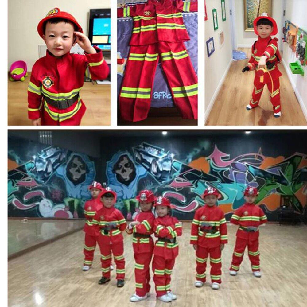 Fireman Costume for Kids Boys Girls Firefighter Career Uniform Work Role Play Suit Birthday Gift