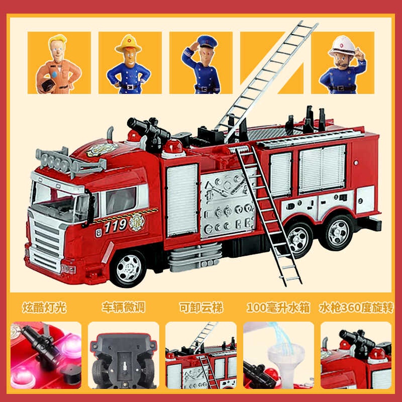 Fireman Sam Children's Toy Electric Remote Control Water Spray Doll Model Puppet Jupiter Fire Truck