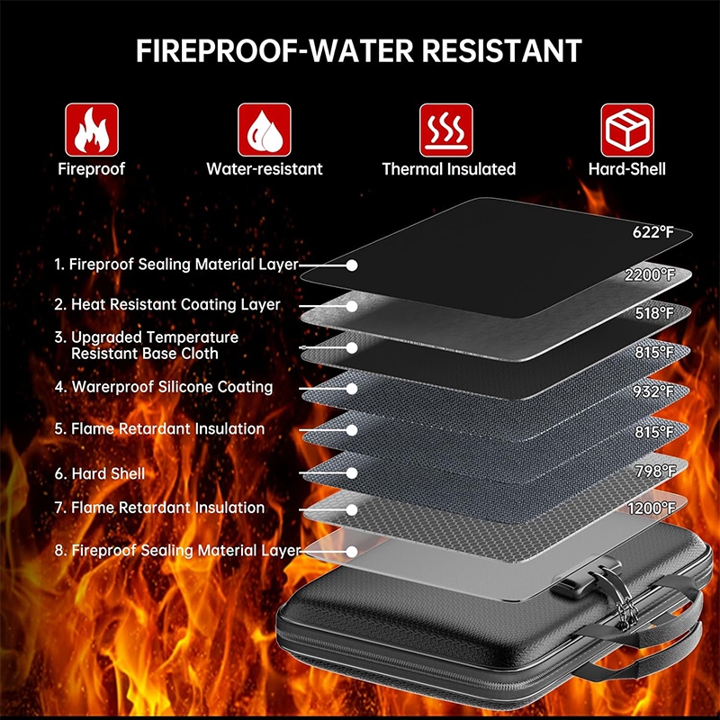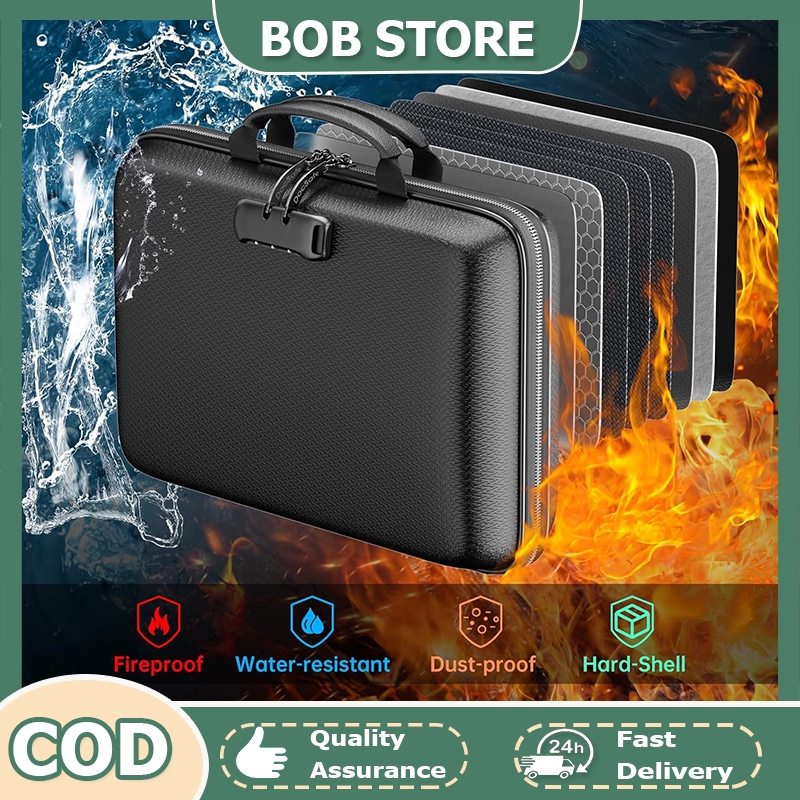 Fireproof Document Bag with Lock Waterproof Document File Organizer Portable Office Travel Safe Bag