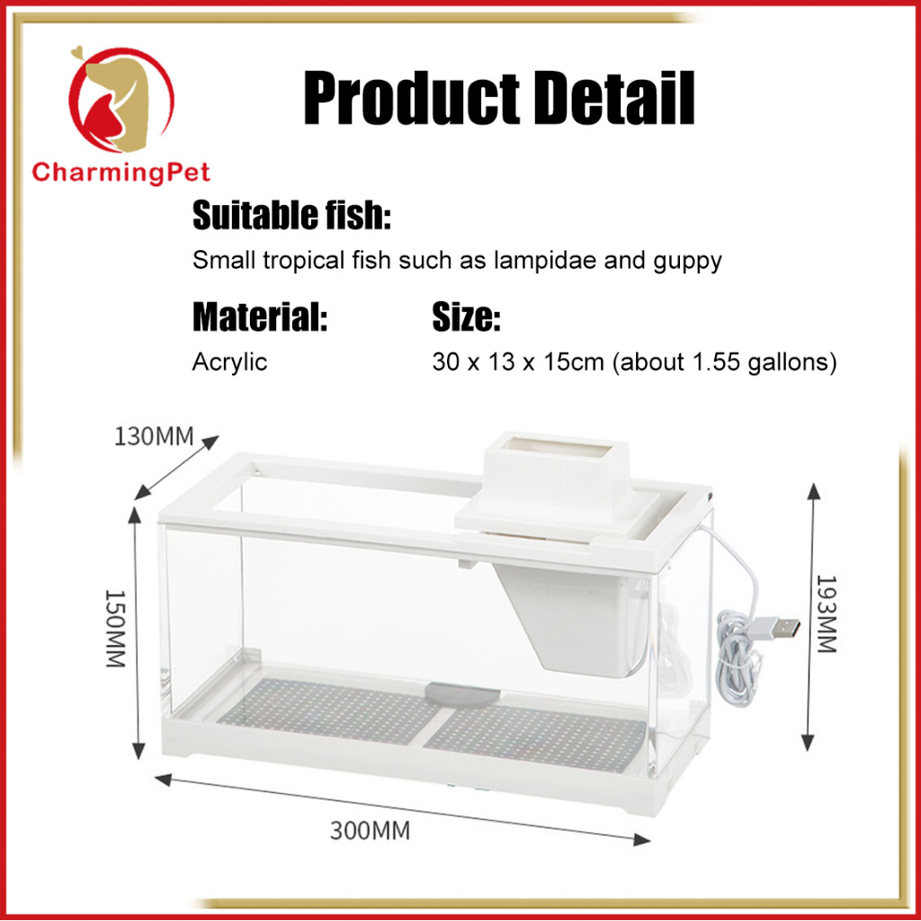 Fish Tank Desktop, 1.55 Gallon Acrylic Aquarium with Air Pump LED Light, for Betta Fish Starter Kit