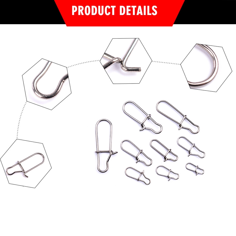 Fishing Connector Lure Pin Hook Lock Klip Kekuatan Tinggi 100pcs