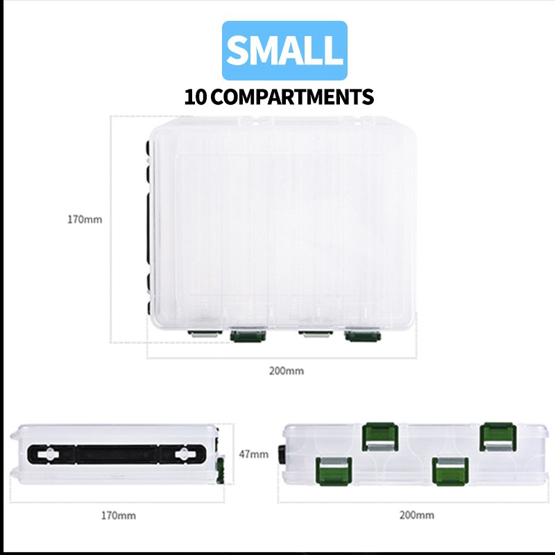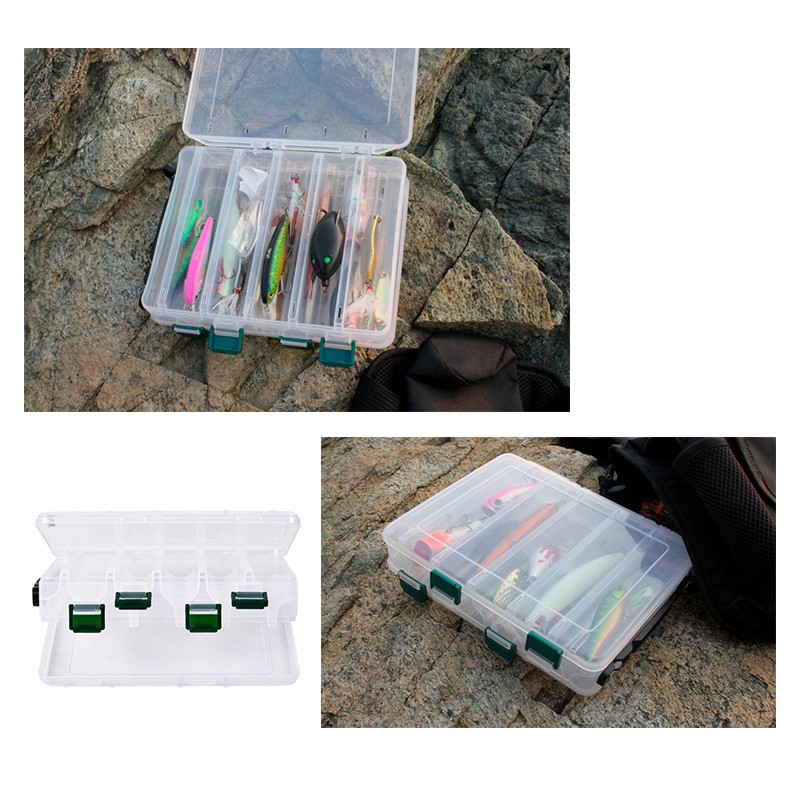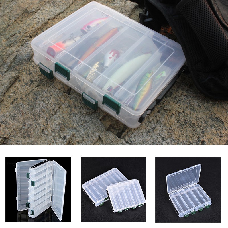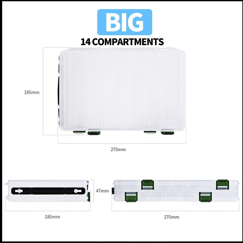 Fishing Lure Box 14 Compartments Double Sided Spinner Bait Minnow Popper Fishing Tackle Box