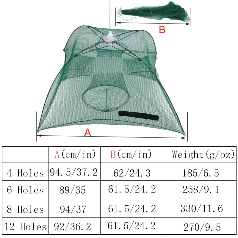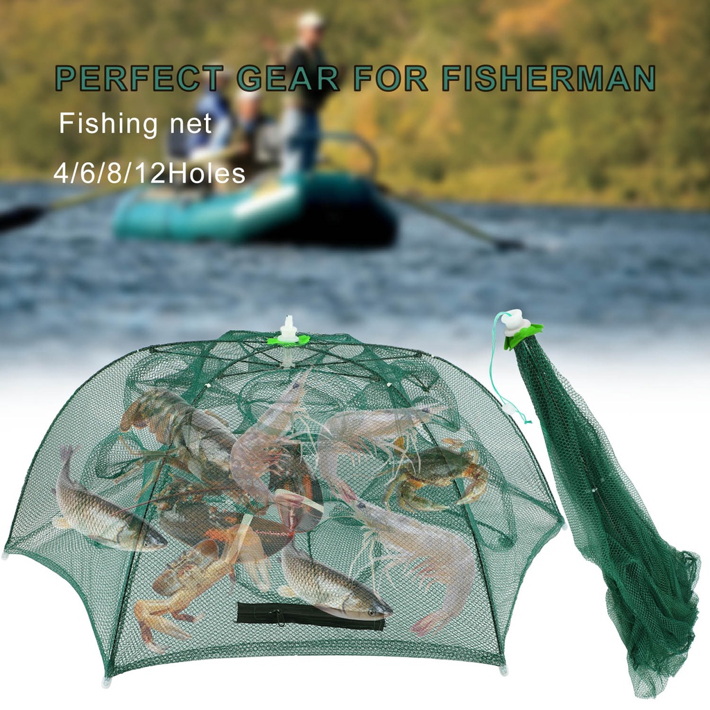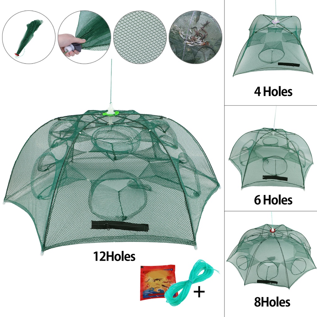 Fishing Net 4/6/8/12 Holes Buckle Casting Crayfish Catcher Minnow Shrimp Crab Bait Trap Cage