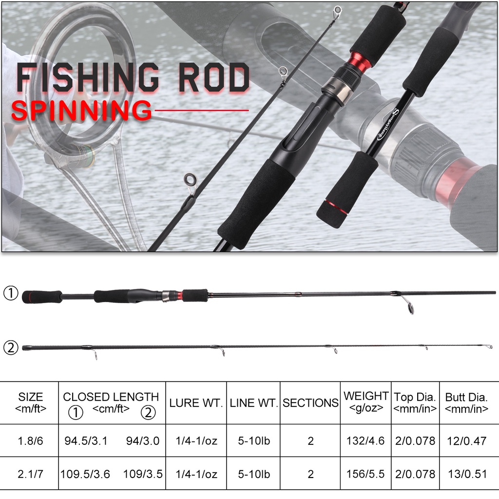 Fishing Rod Carbon Rod M Power 2 Section 1.8/2.1m Spinning/Casting Fishing Rod For Freshwater