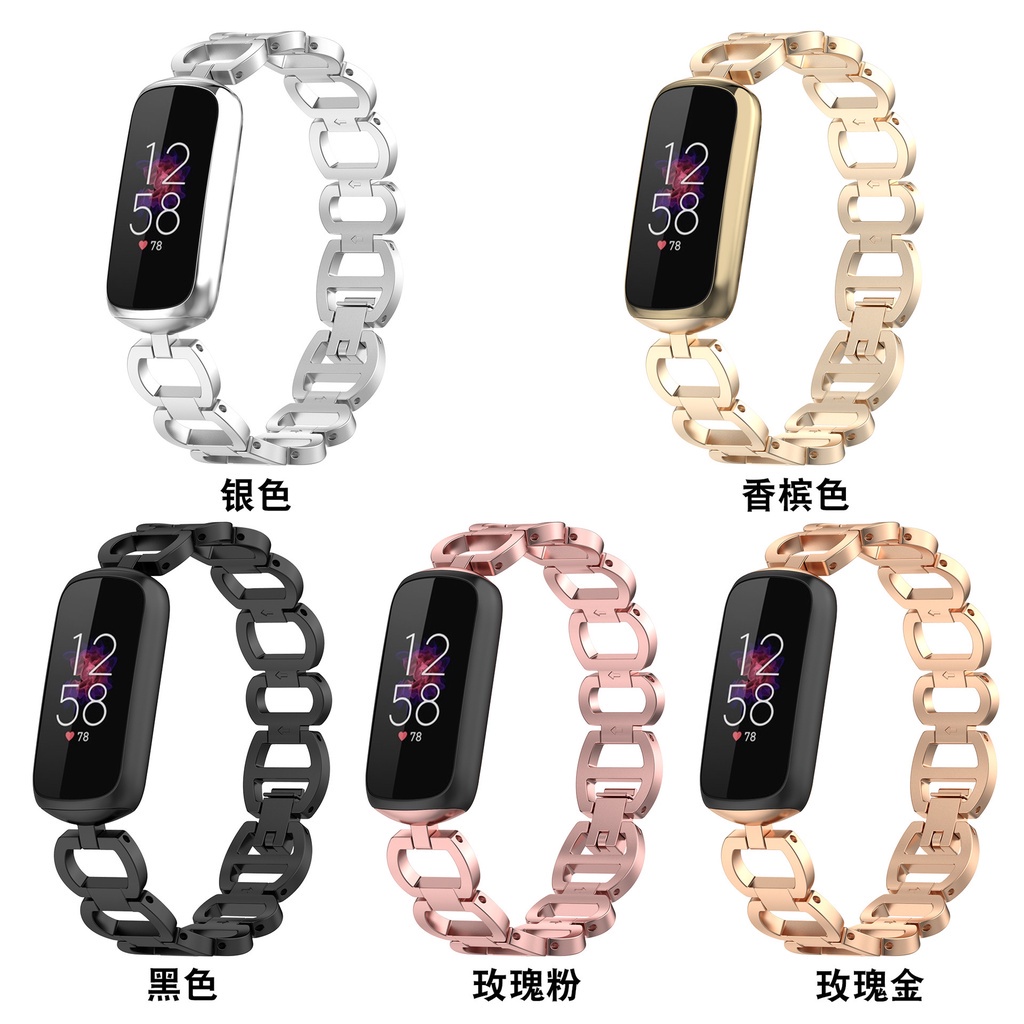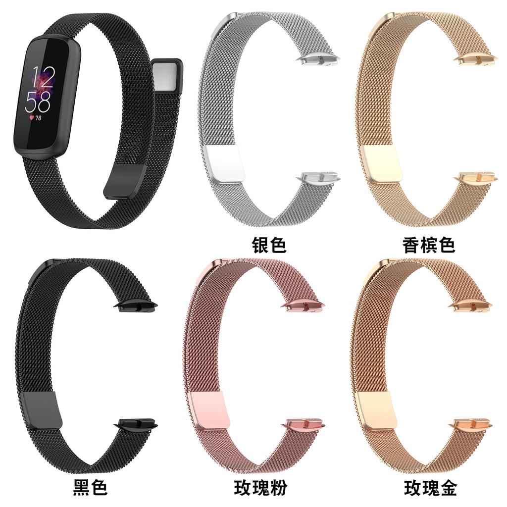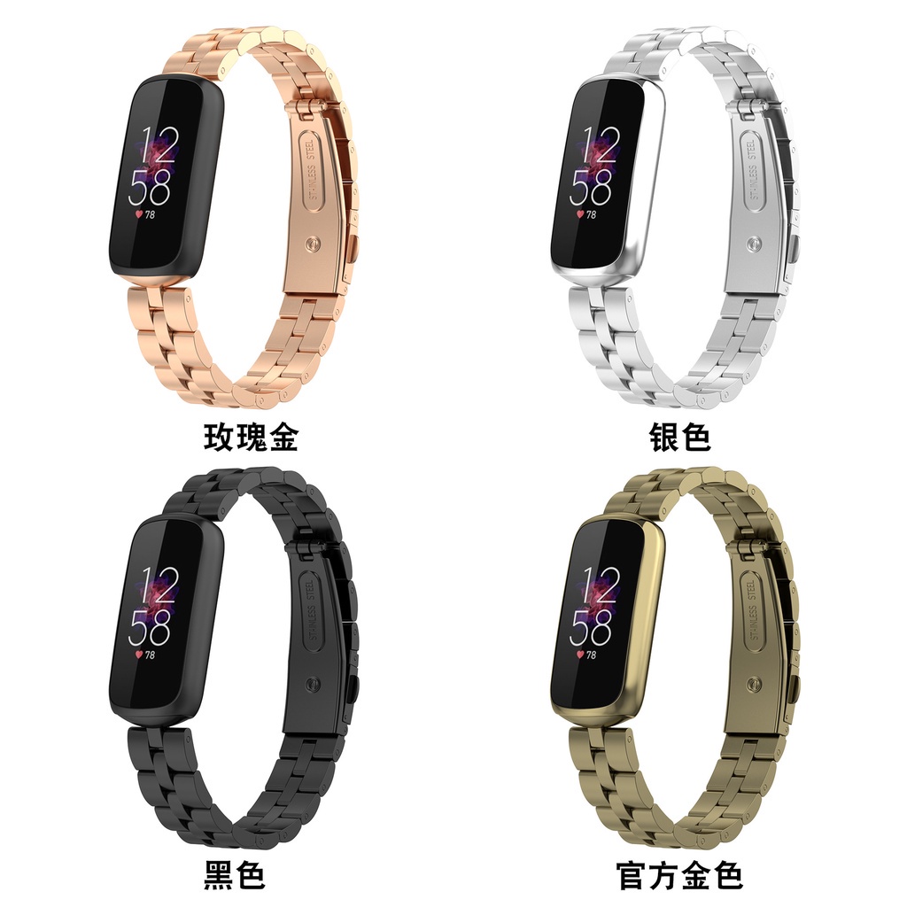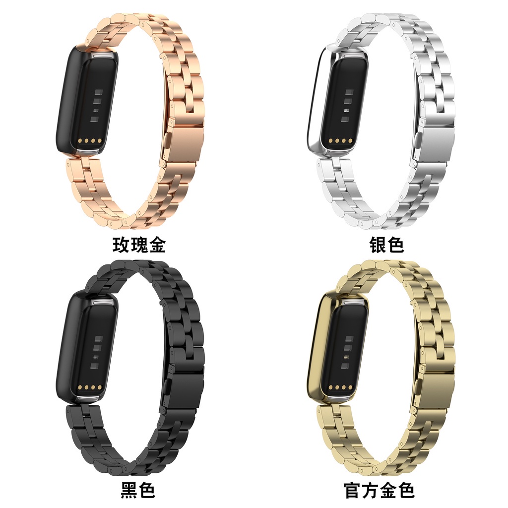 Fitbit Luxe Bracelet Milano Two-section Magnetic Metal Strap Fitbit Luxe Three-Bead Stainless Steel Strap LUXE Bracelet D-shaped Metal Replacement Wristband
