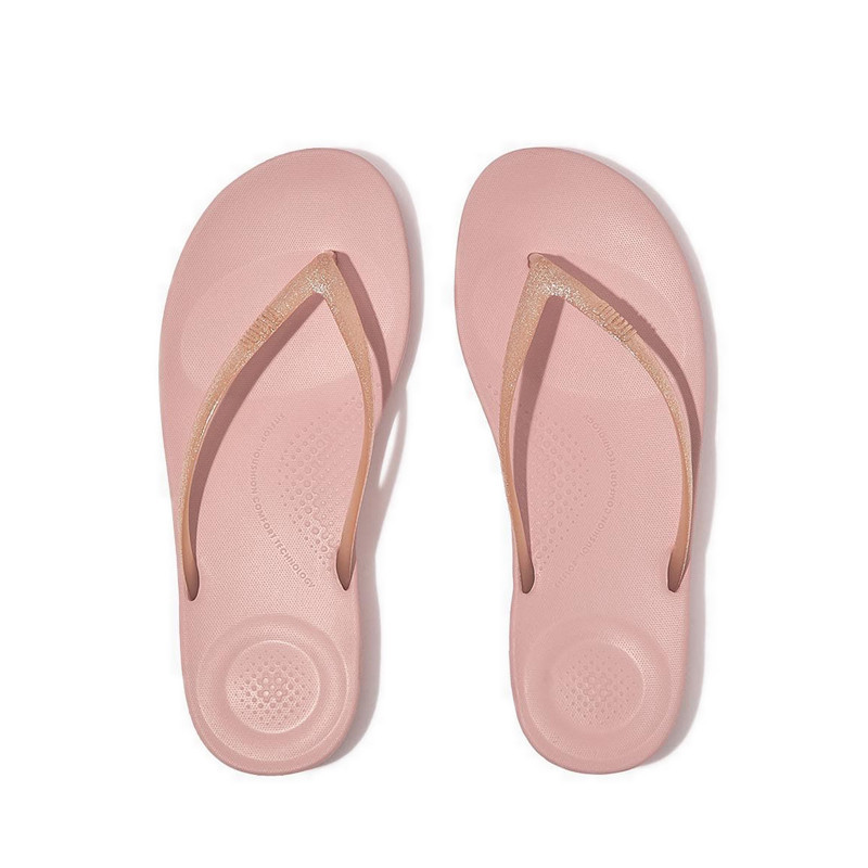 Fitflop iQUSHION Glitter Ergonomic Flip-Flops - Dusky Pink/Copper