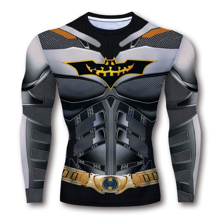 Fitness Compression Shirt Men Bodybuilding Long Sleeve Workout 3D Batman T Shirt Tops Tees