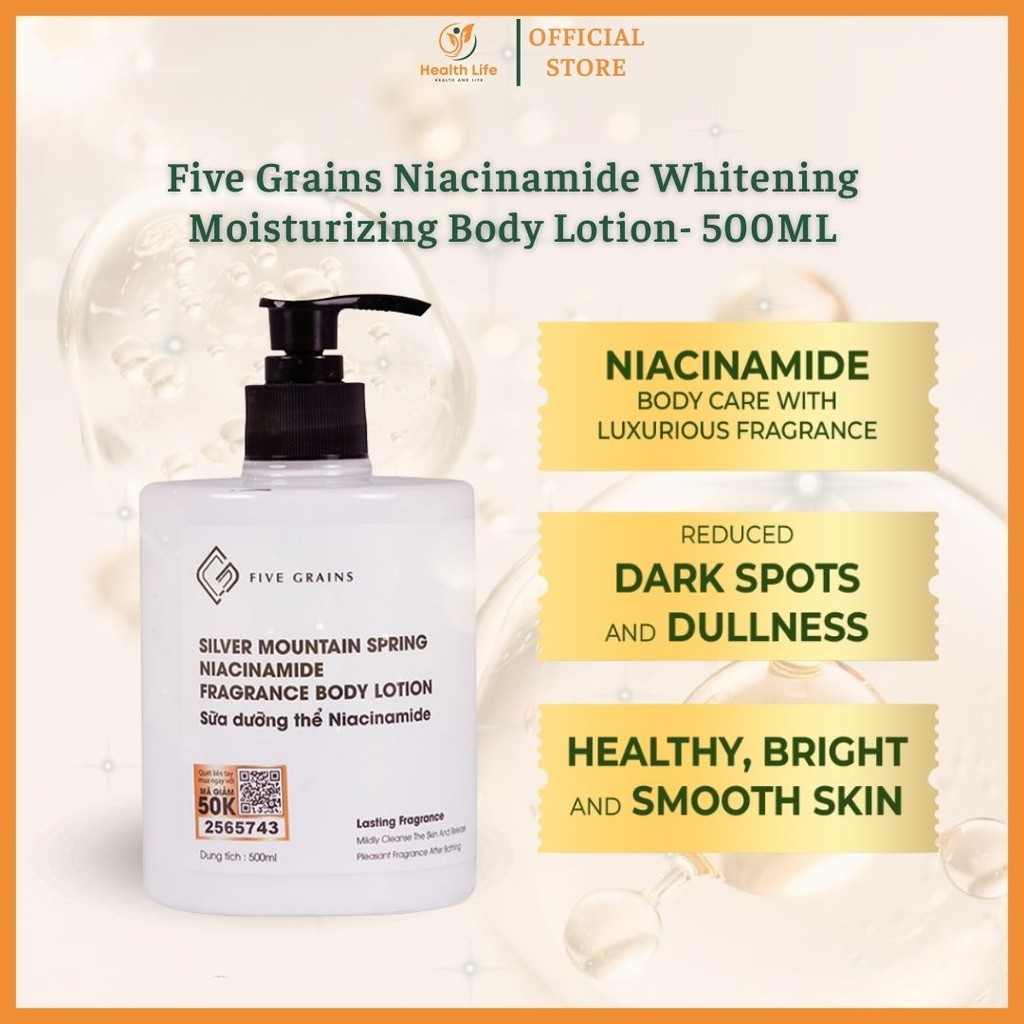 Five Grains Niacinamide Whitening Moisturizing Body Lotion- 500ML