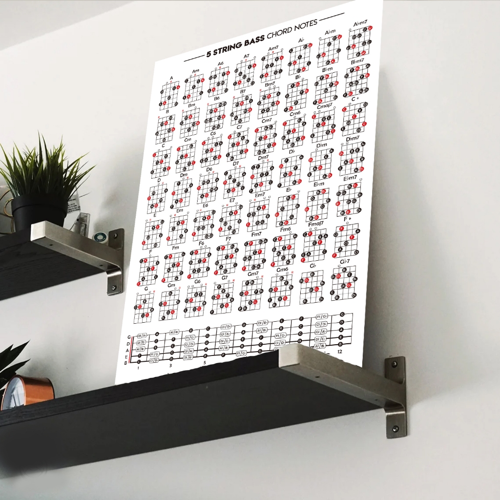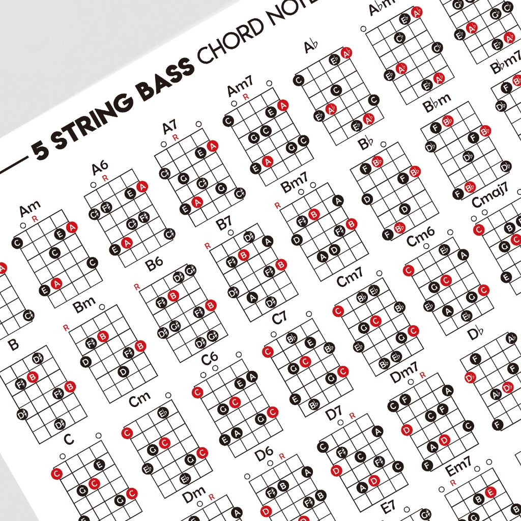 Five String Bass Guitar Chord PosterNotes, Bass Chords Reference, Student Poster, Music Education, Fretboard Notes, Chords Song Key Chart