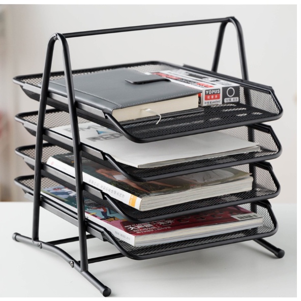 Five layers Wire mesh file tray frame with multiple file holders desk orgnizers file information