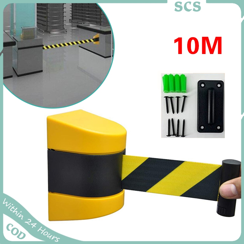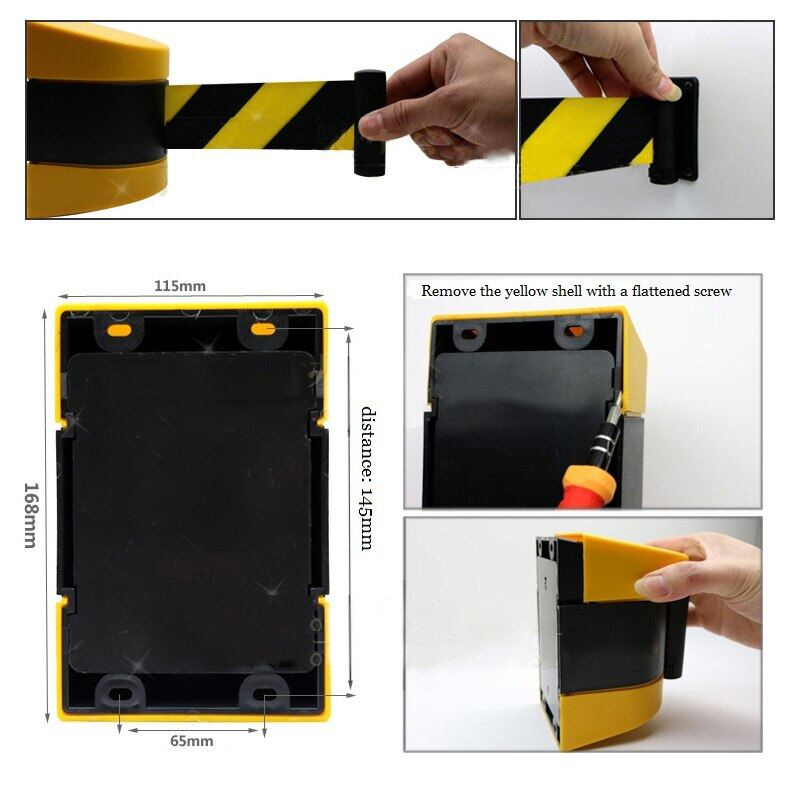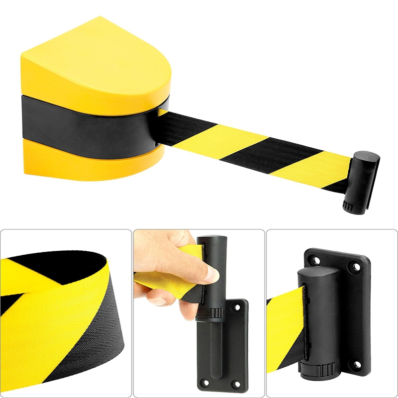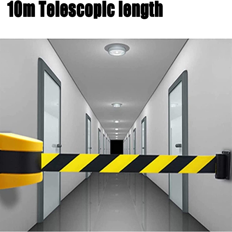 Fixed Wall Mount Retractable Belt Barrier with ABS Case, 10m Black and Yellow Safety Belt
