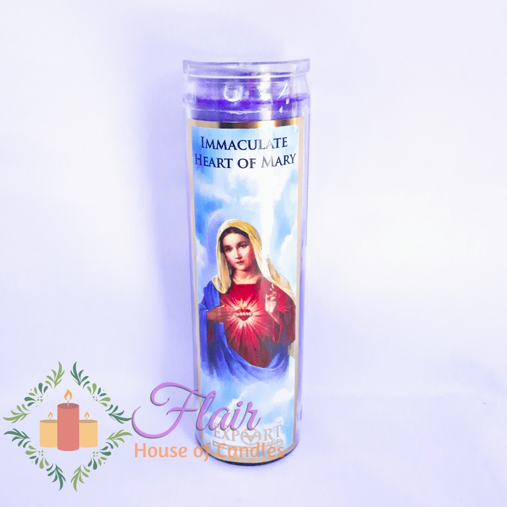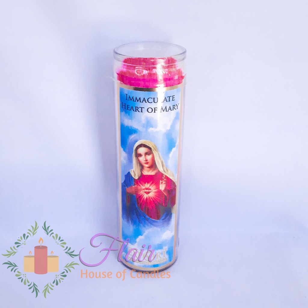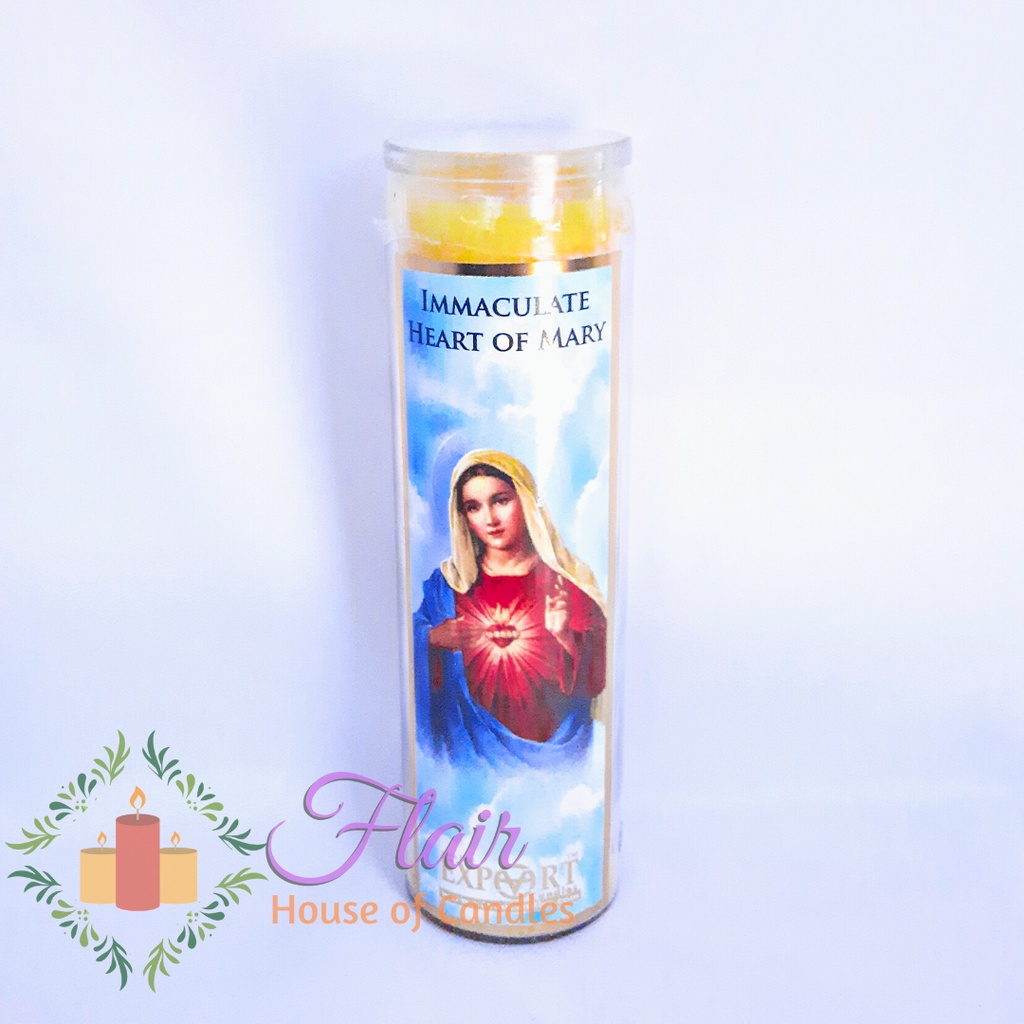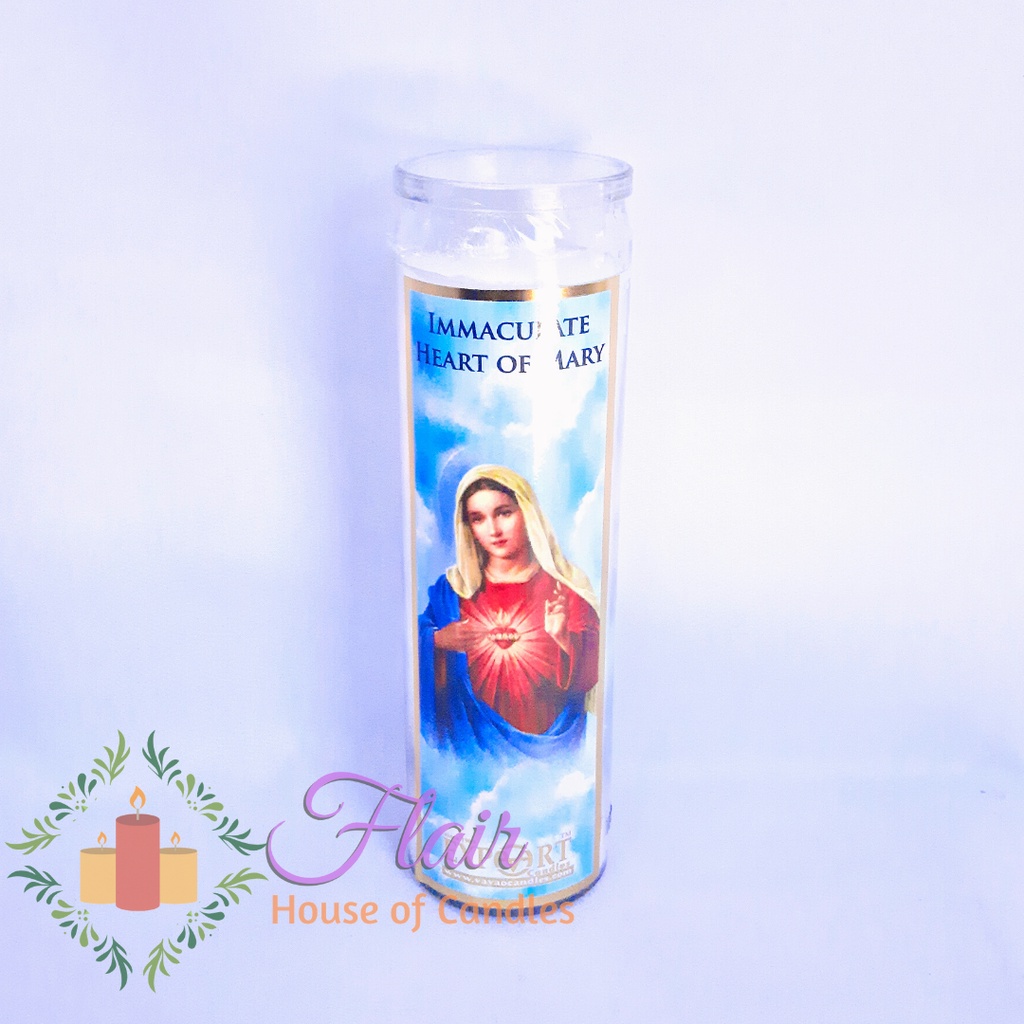 Flair Immaculate Heart of Mary Long Glass Candle Smokeless Altar Prayer Candle (100hrs burning time)