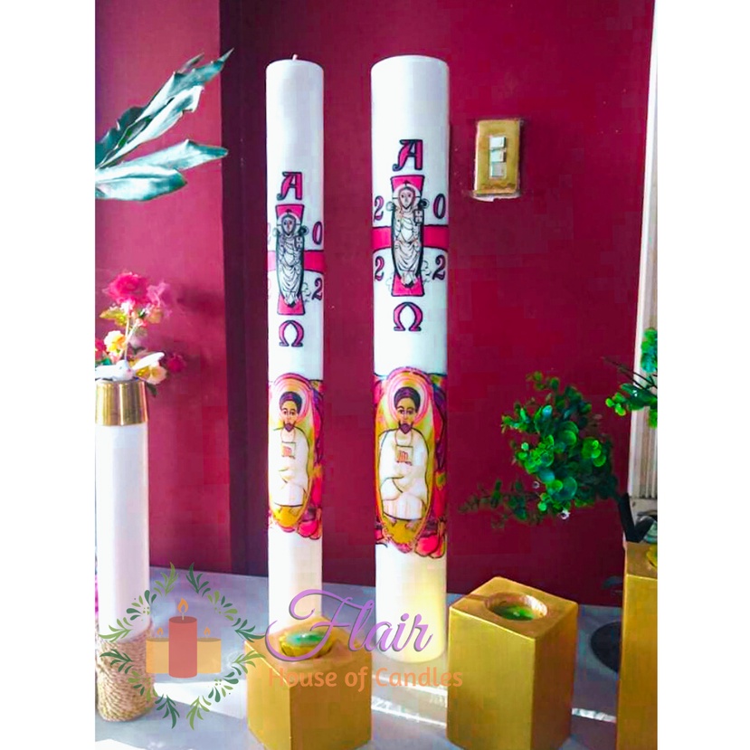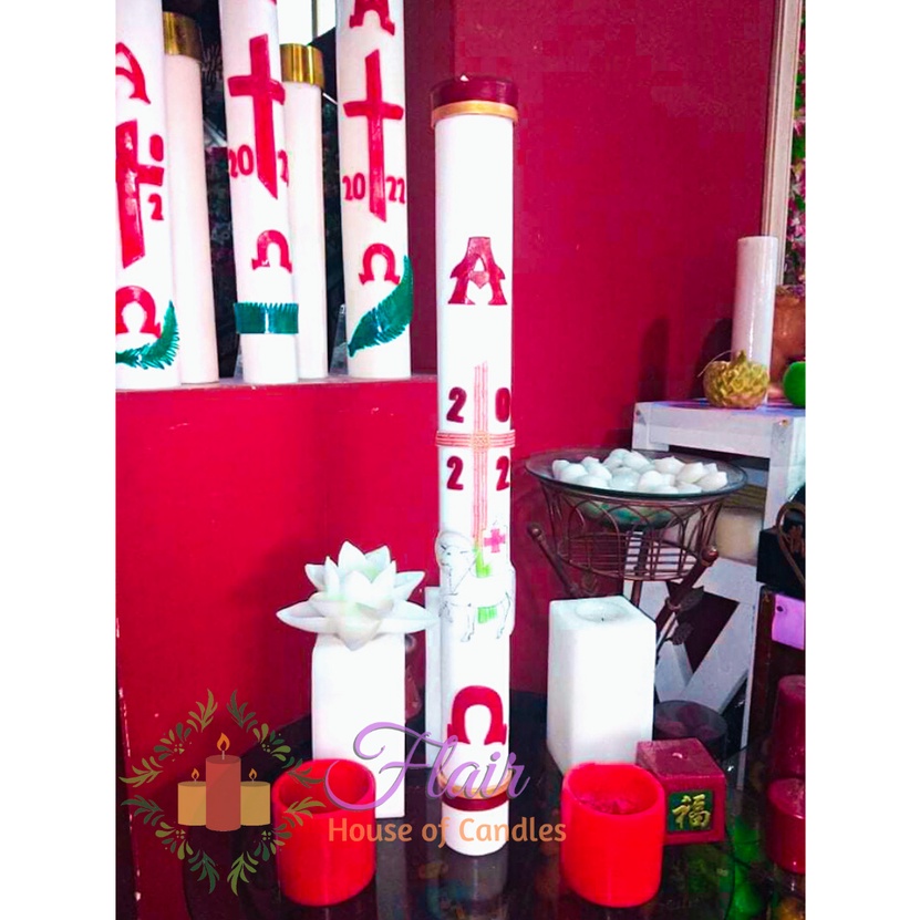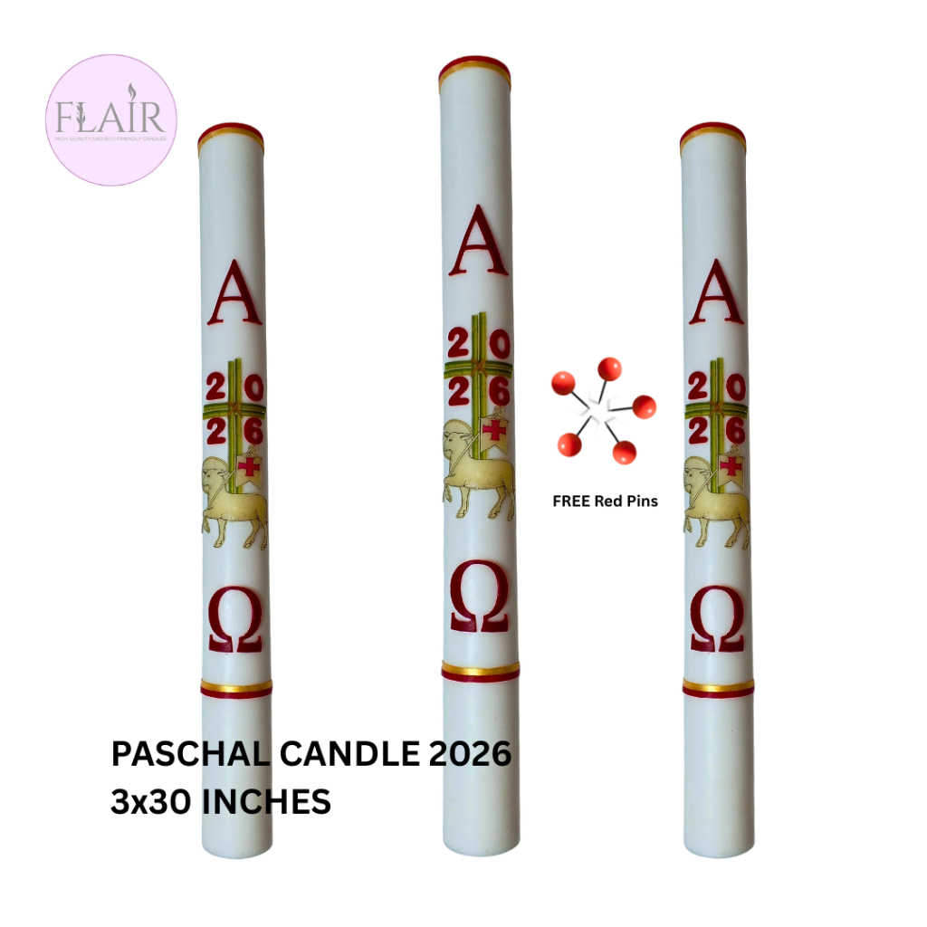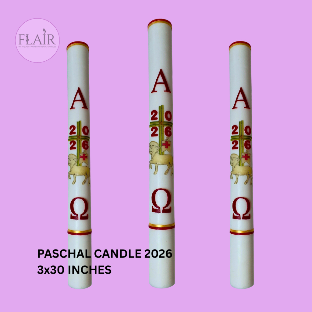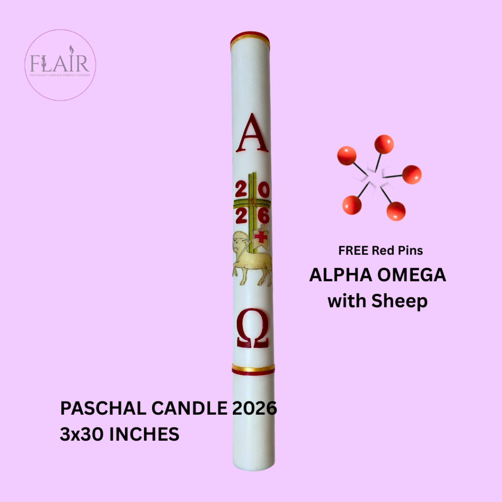Flair Paschal Candle 2026 Alpha Omega | 3 x 30 Inches | Church Altar Candle | Smokeless and Dripless