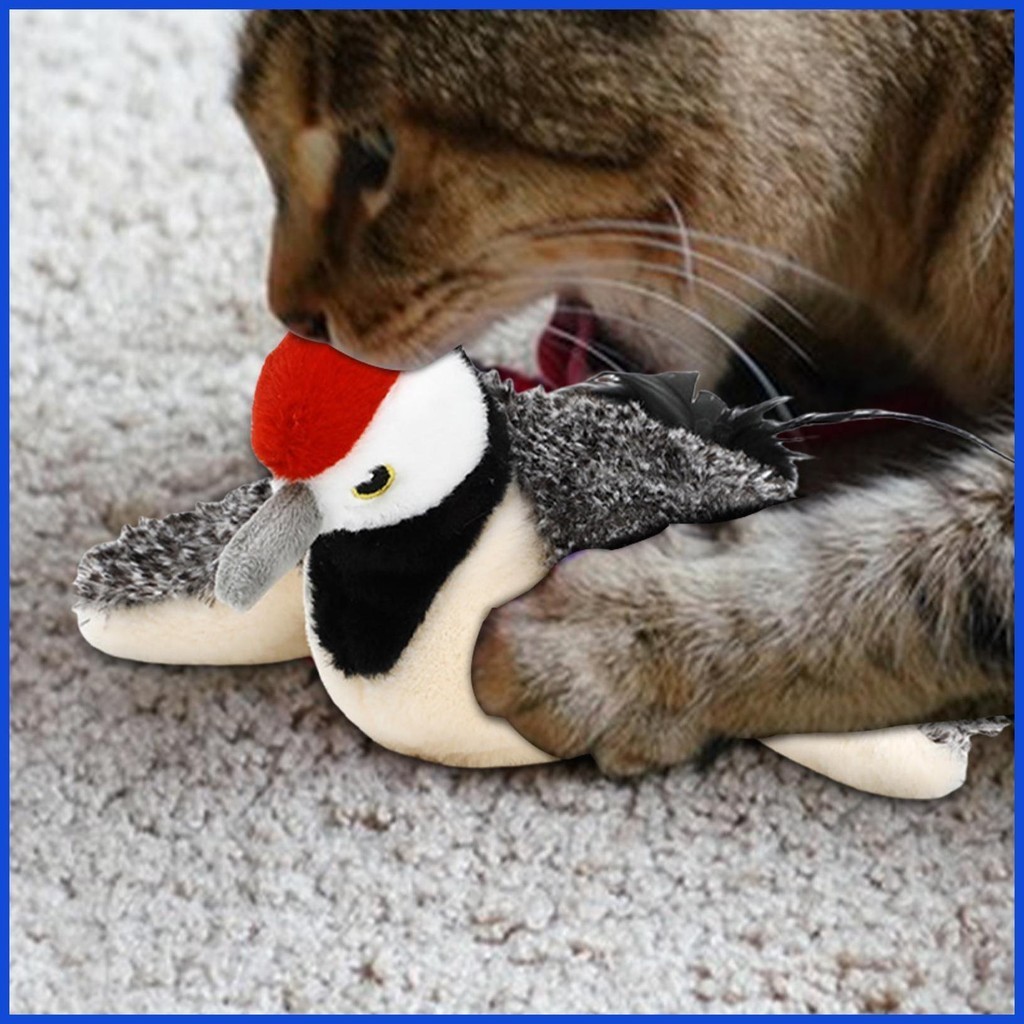 Flapping Cat Toy Bird Electric Bird Cat Toys with Flapping Wings Plush Woodpecker with Sound Rechargeable Pet bantkph