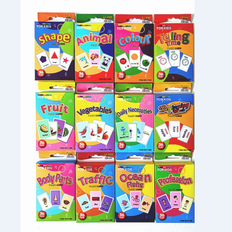 Flash card Vocabulary 36 Cards Photo Bright Colors Learn English Memory For Children