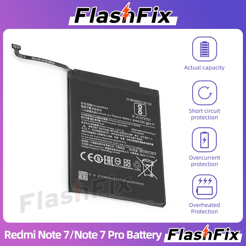 FlashFix For Xiaomi Redmi Note 7/Note7 Pro High Quality Cell Phone Replacement Battery BN4A 4000mAh