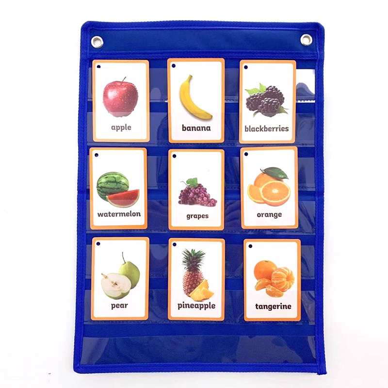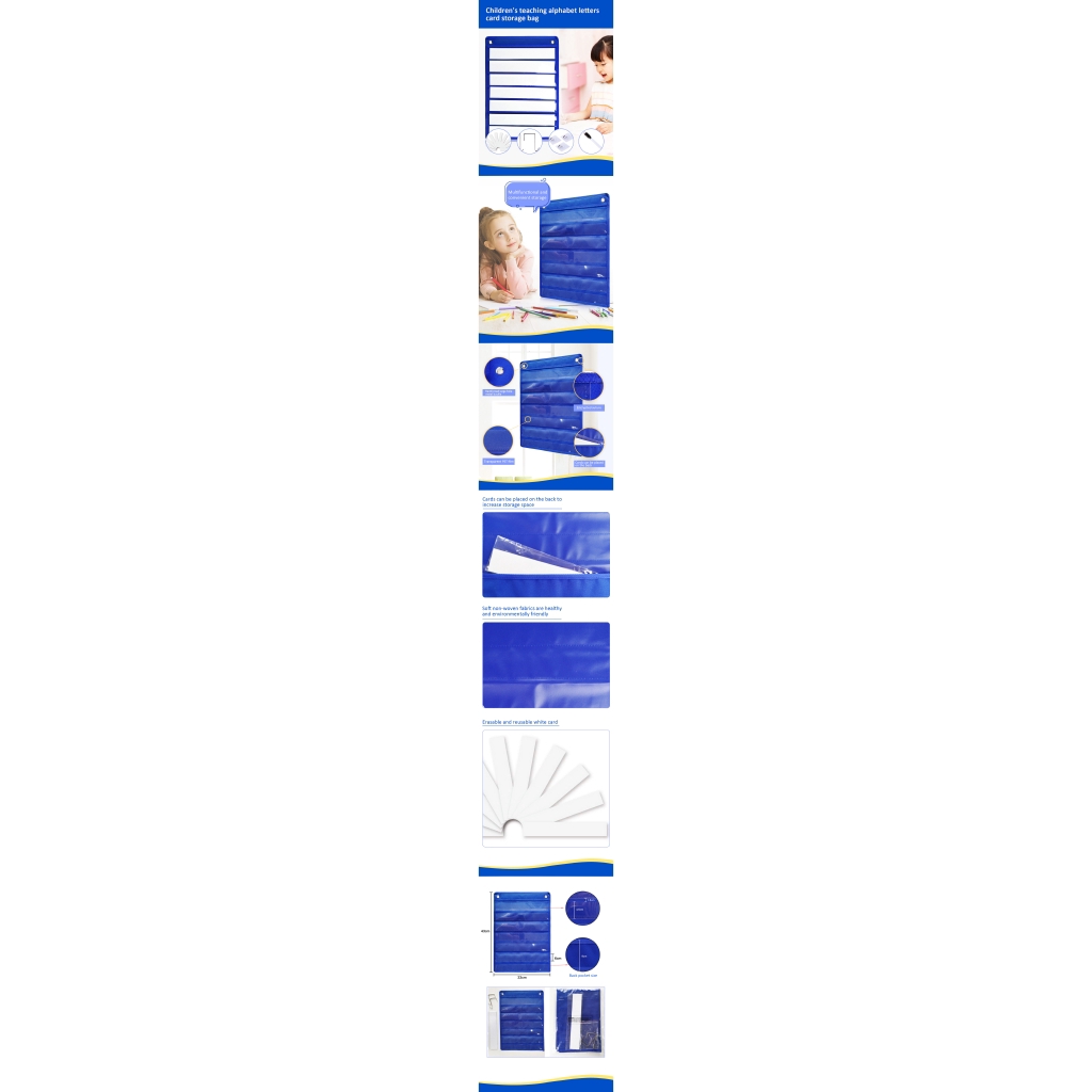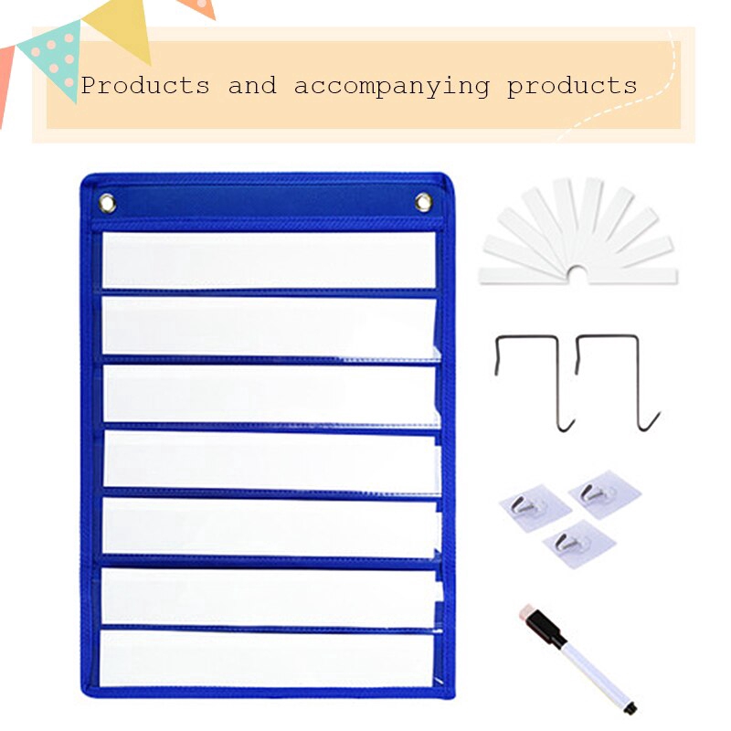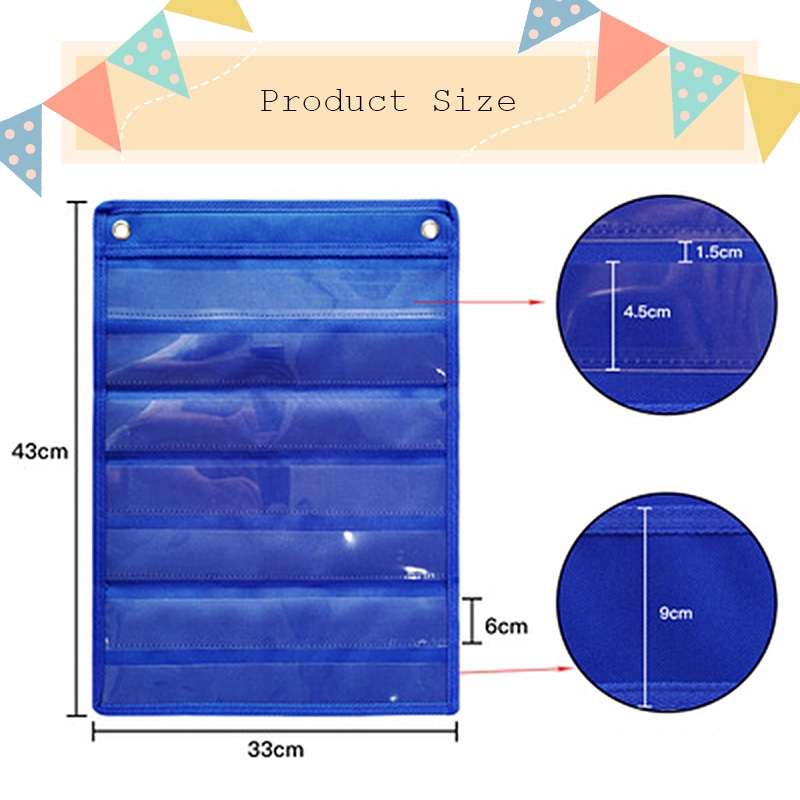 Hanging Flashcard Pocket Organizer – Blue Multi-Layer Clear Pouch for Flashcards,Multi-Pocket Classroom Organizer, Whiteboard Compatible Card Storage for Teachers & Kids