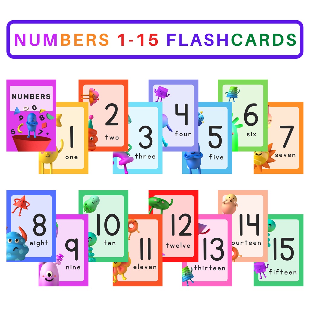 Flashcards 16PCS COUNTING NUMBERS 1-16 , Educational Laminated Chart, Poster, Flashcards for kids