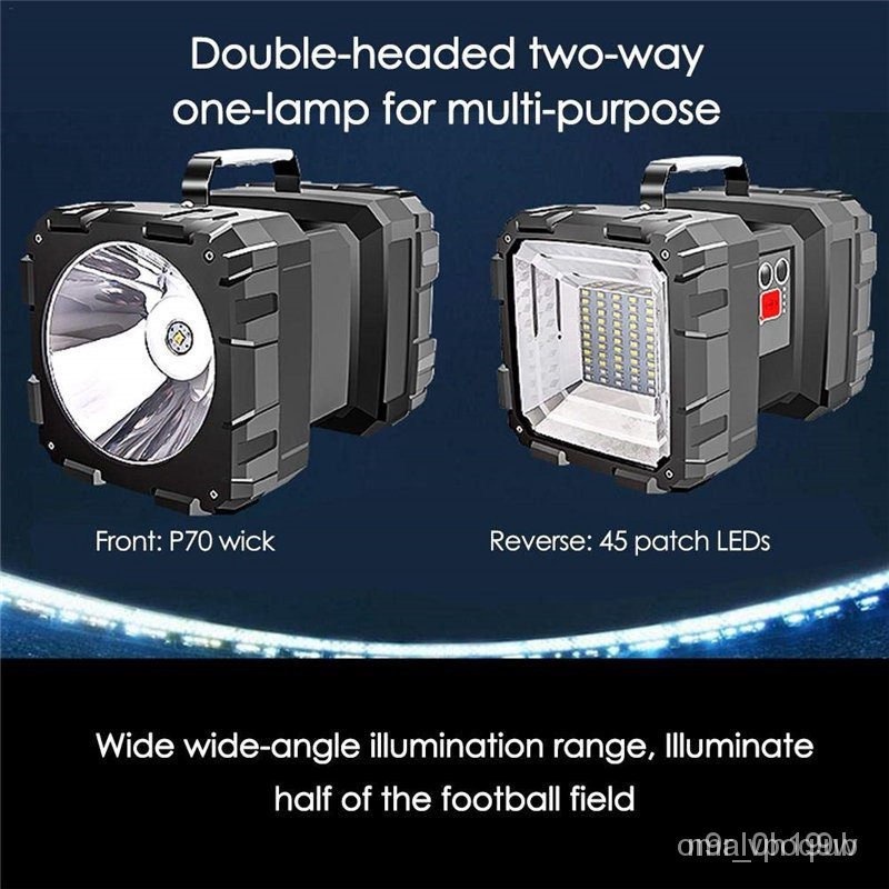 Flashlight Bright Double Head Handheld LED Spotlight Flashlight Camping Searchlight Rechargeable 40W