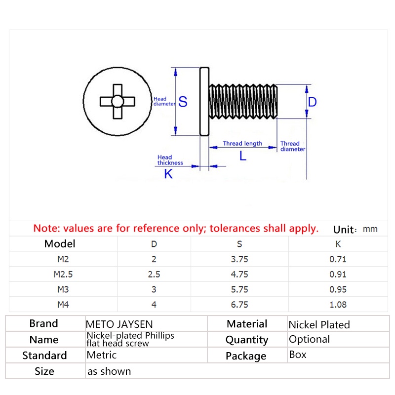 Flat Head Phillips Screw M2 M2.5 M3 M4 Small Screws Bolts Solid Fasteners Length 3mm-16mm