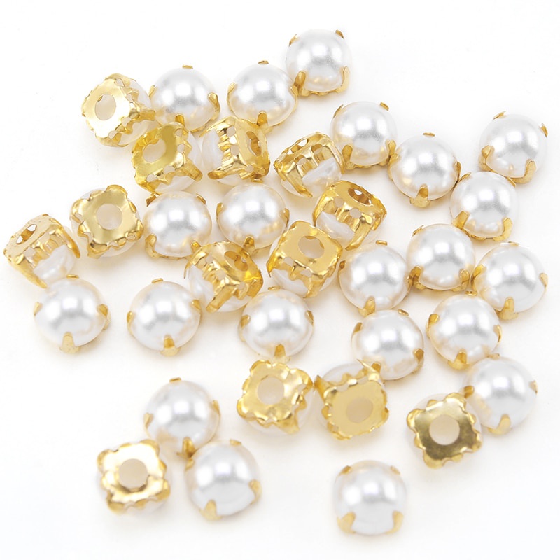 Flat Pearl ABS Half Beads Cabochons With Rhinestones Acrylic Half Pearl Beads Flower Beads For Fabric & Decorative Crafts
