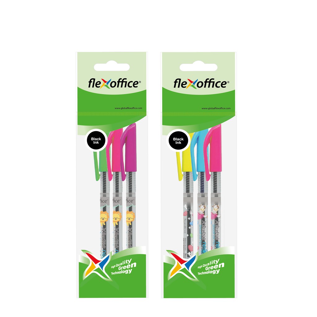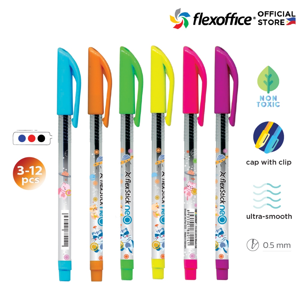 FlexOffice FlexStick Neo BallPoint Pen 0.5mm - 3pcs/6pcs/box 12pcs - Black Ink - FO-GELB019