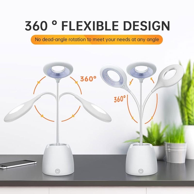 Flexible Table Desk Touch Sensor Lamp Shade 3Level Dimming LED Night Light & Pen Phone Holder