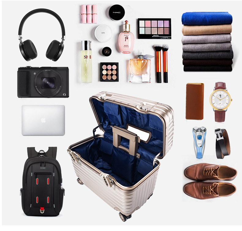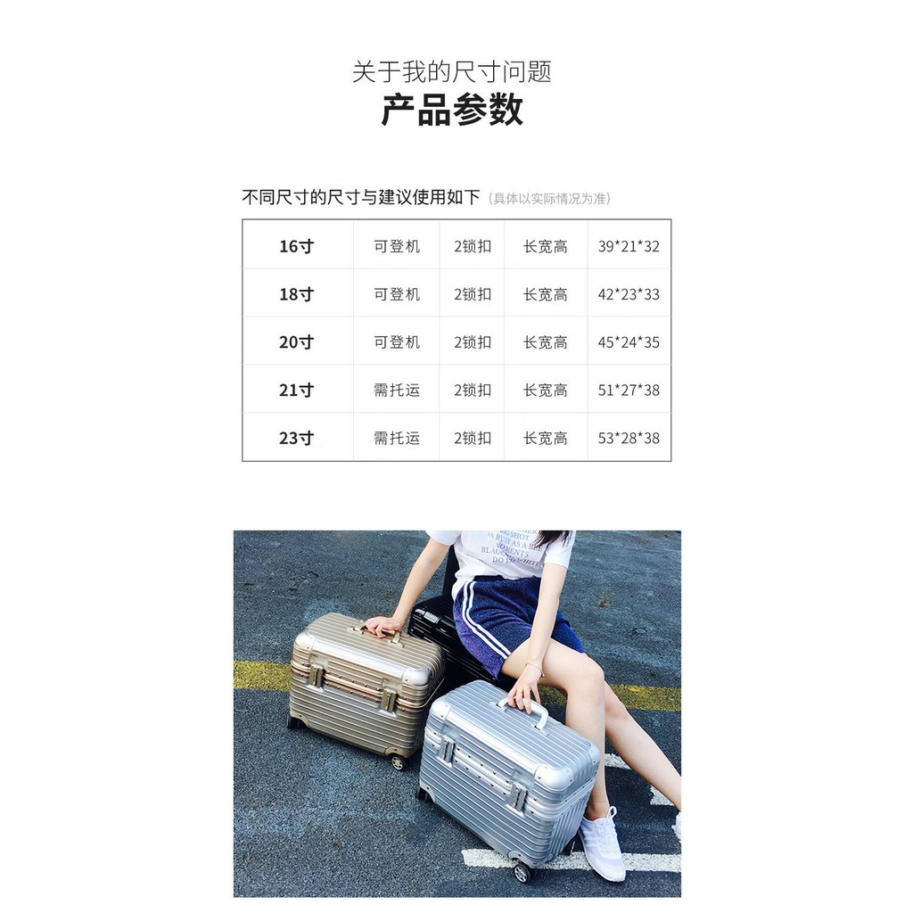 Flight attendant boarding case aluminum frame pull rod suitcase universal wheel flap photography suitcase