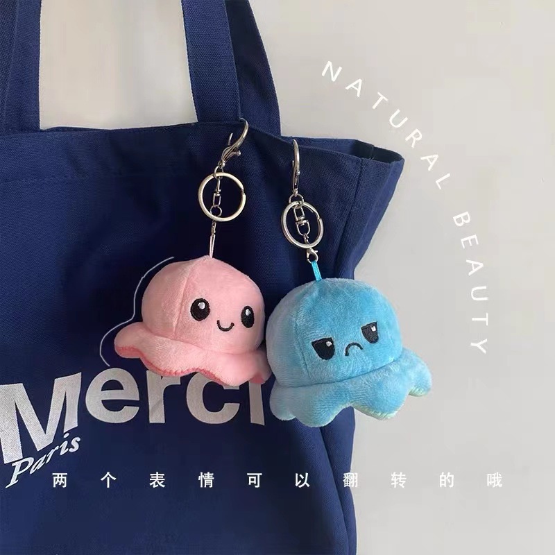 Flip Octopus Doll Pendant Plush Toy Reversible Flip Octopus Keychain Doll Bag Pendant
