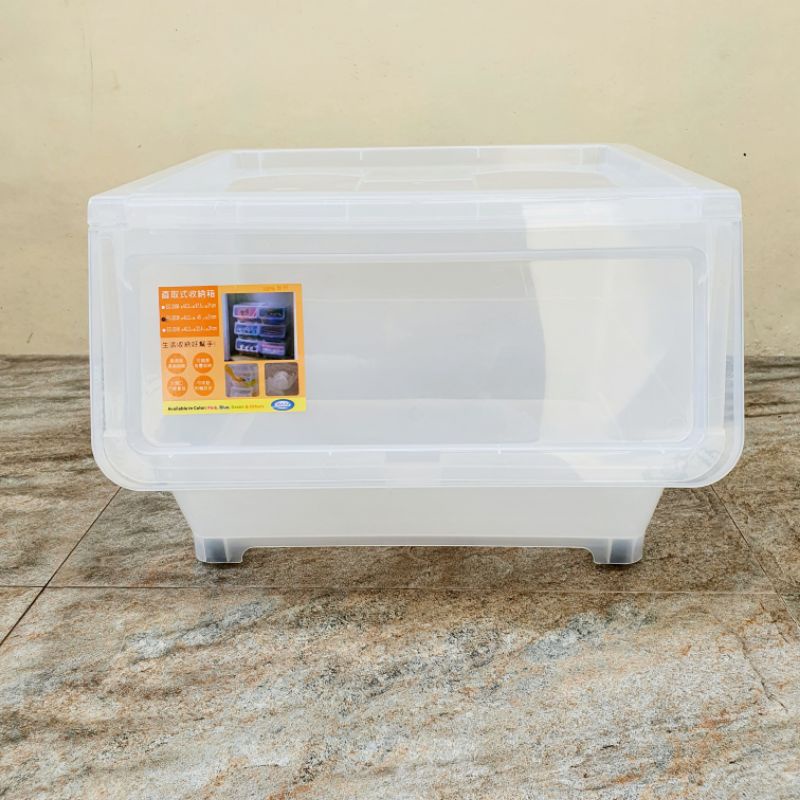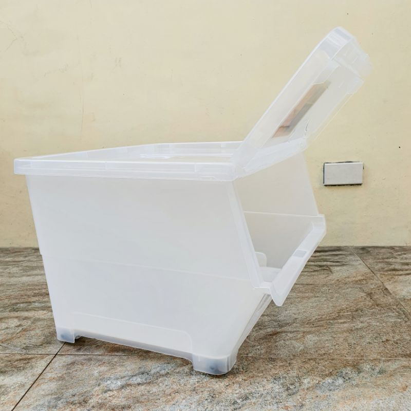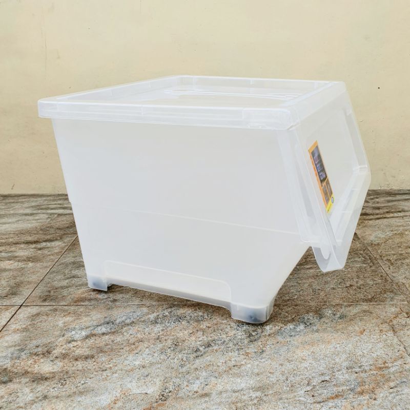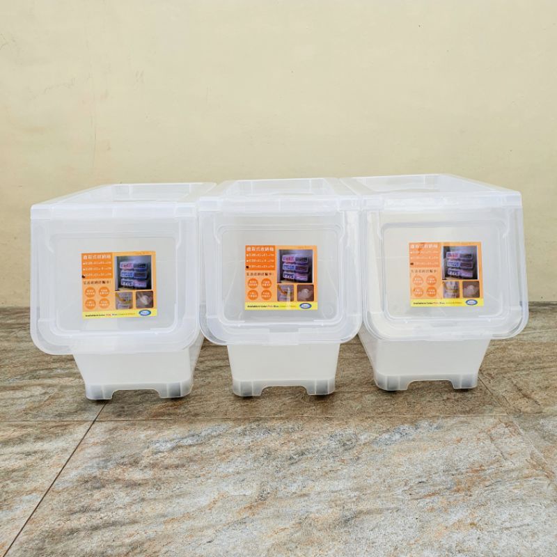 Flip Type Storage Box Organizer 18L 38L Clear Transparent Stackable with Wheels
