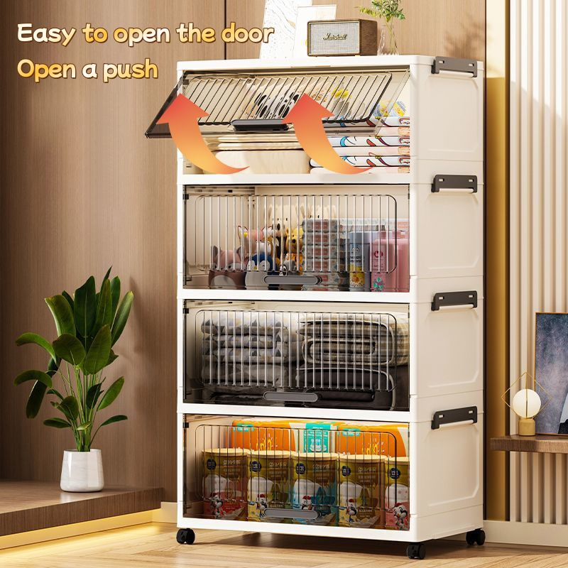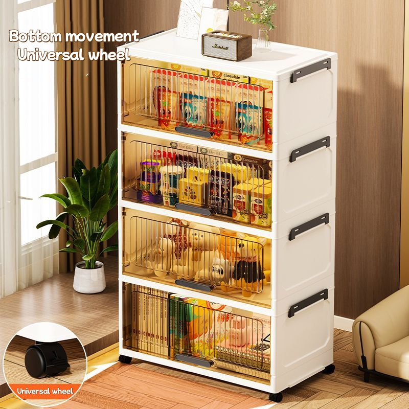 Flip cabinet is easy to install for home organization, wide wardrobe, multifunctional kitchen, plastic storage box, toy storage rack, dust-proof transparent storage rack box