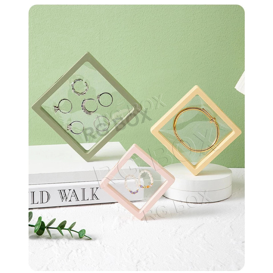 Floating Frame 3D Display Jewelry Box Suspension Storage PE Film Antioxidation Organizer