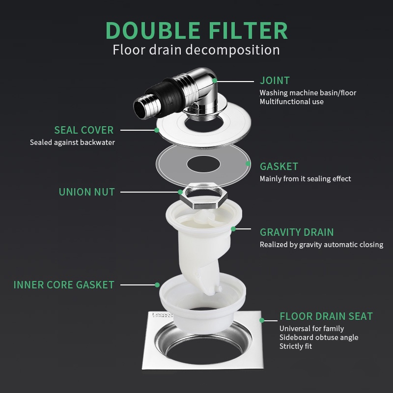 Floor drain washing machine floor drain cover 304 stainless steel bathroom floor drain floor trap washing machine drain 10*10cm floor trap cover drain cover WJ210