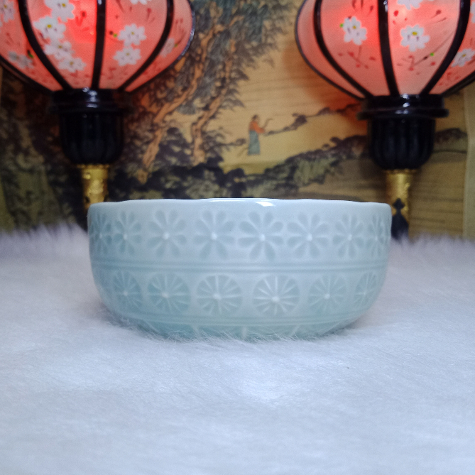 Floral Embossed Light Green Ceramic Bowl - JAPAN