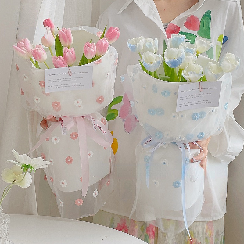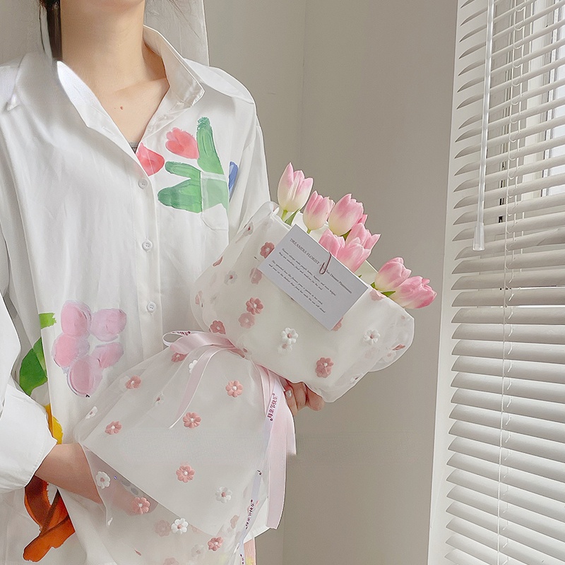 Floral Net Yarn Flower Wrapping Mesh Bouquet Wrapper for Flower Gift Packaging Flower Wrapping Paper Butterfly Embroidery Net Florist Materials