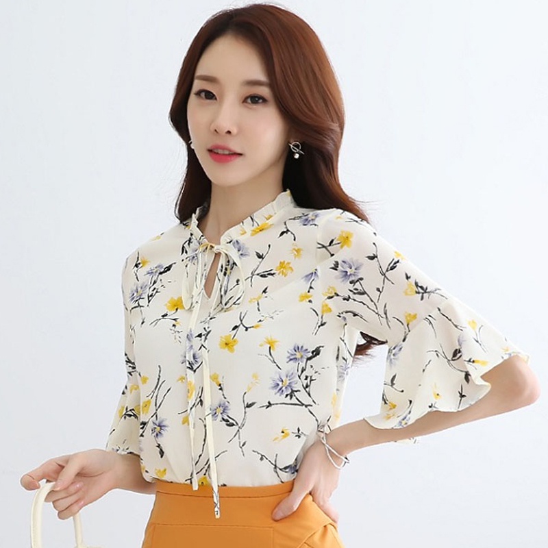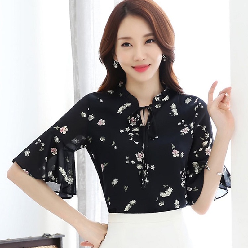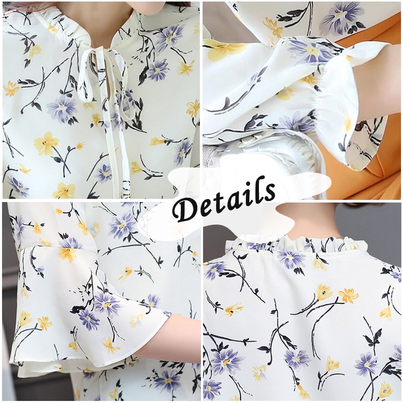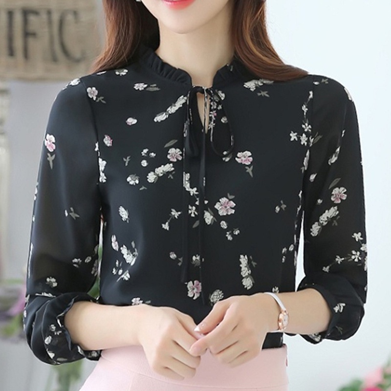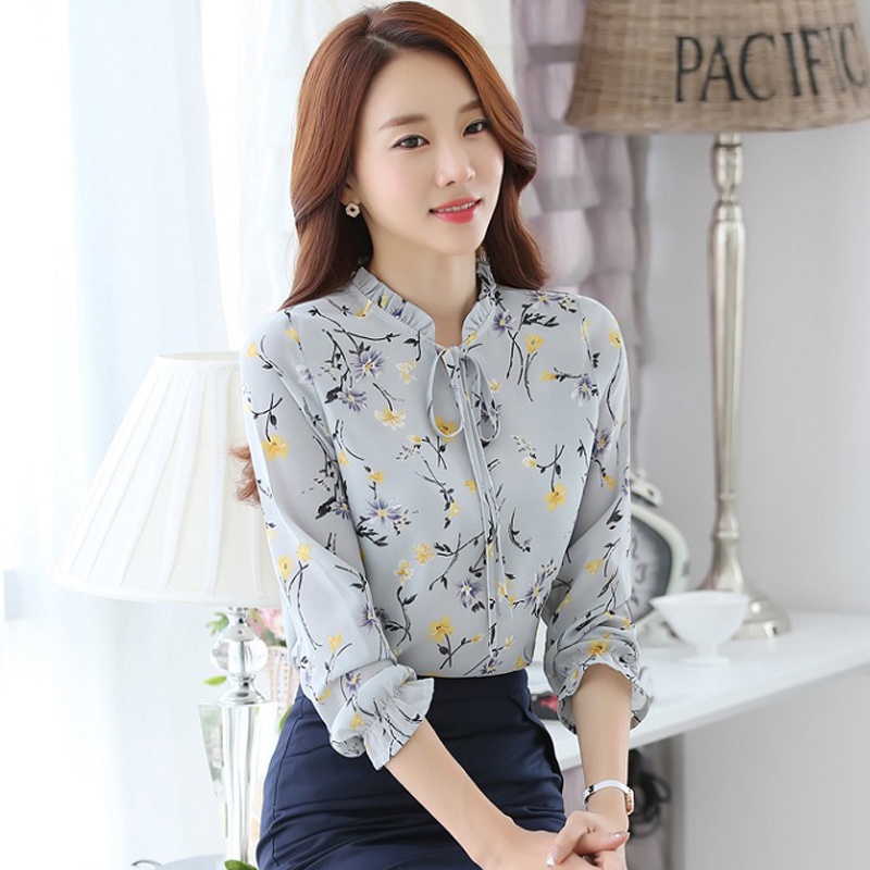 Floral Tops Blouses Women Long Sleeve Shirts Chiffon Blouse