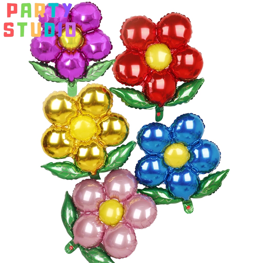 Flower Foil Balloon with Leaf (1 pc) Flower Balloons Nature Theme Party Needs Birthday Decorations