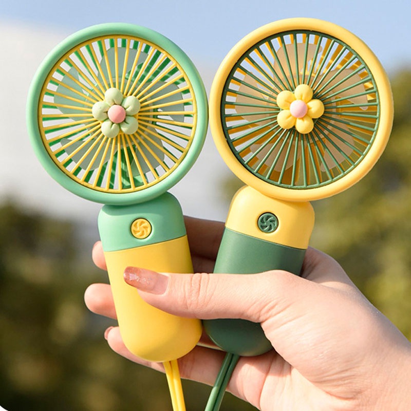 Flower Portable Hand Fan Rechargeable fan Mini USB Fan cute Candy-colored Pocket Cooling Small Kipas Fan Charge Battery Student electric Handheld Fan lanyard