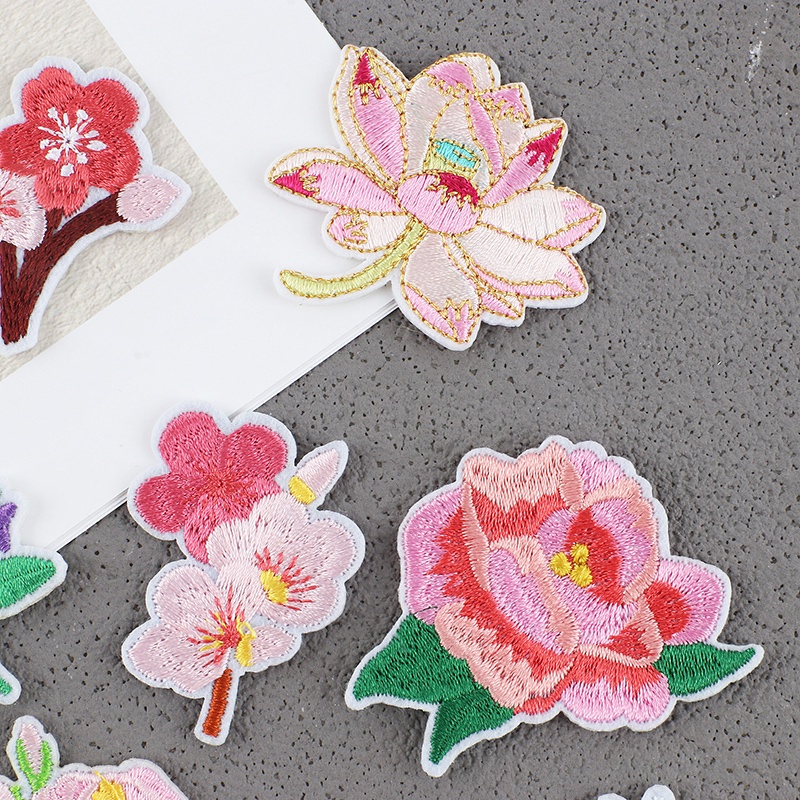 Flower Series Embroidery Patch Cartoon Rose/sunflower/lotus/peony Embroidery Cloth Patch for the Decoration of Backpacks