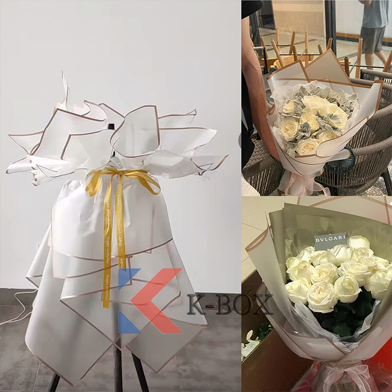 Flower Wrapping Paper Gold Border Jelly Color Packaging Paper Matte Frosted Florist Handmade Paper