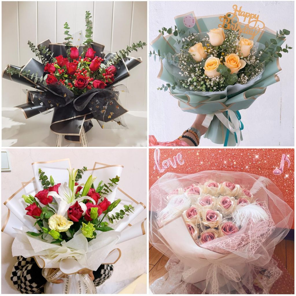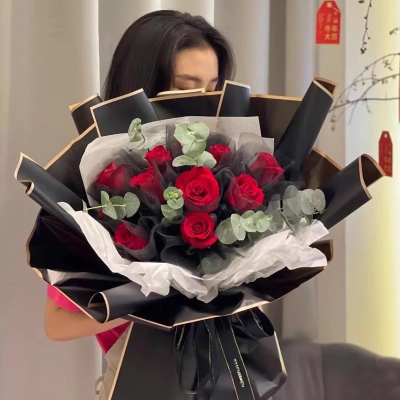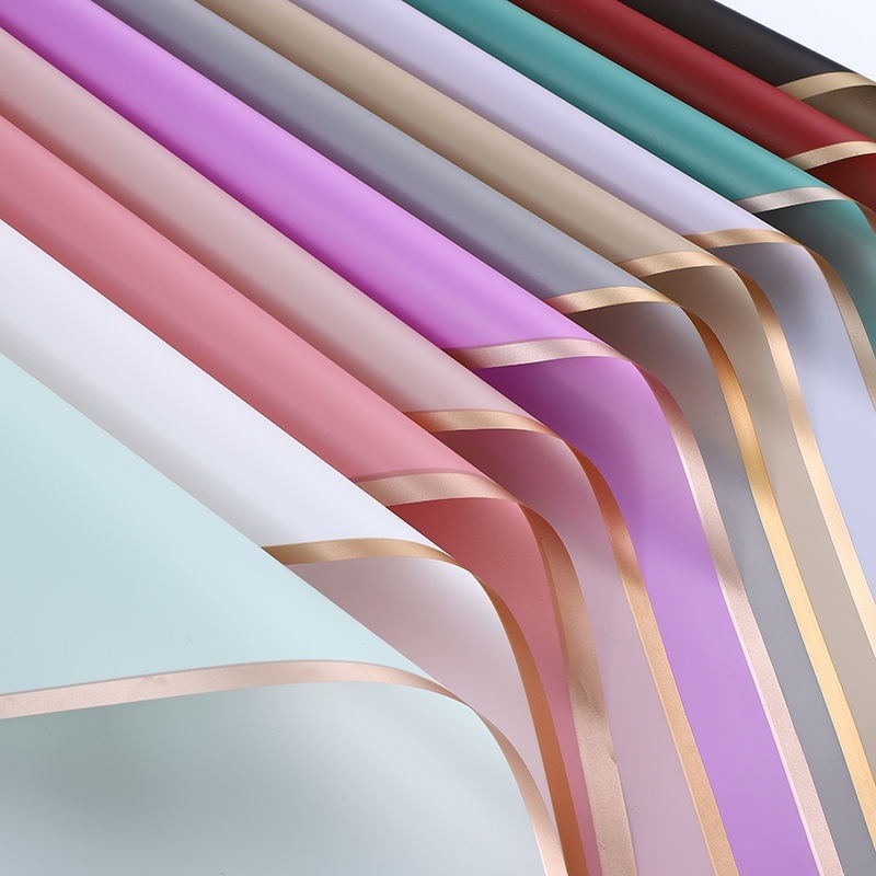 Flower Wrapping Paper Gold Border Jelly Color Packaging Paper Matte Frosted Florist Handmade Paper