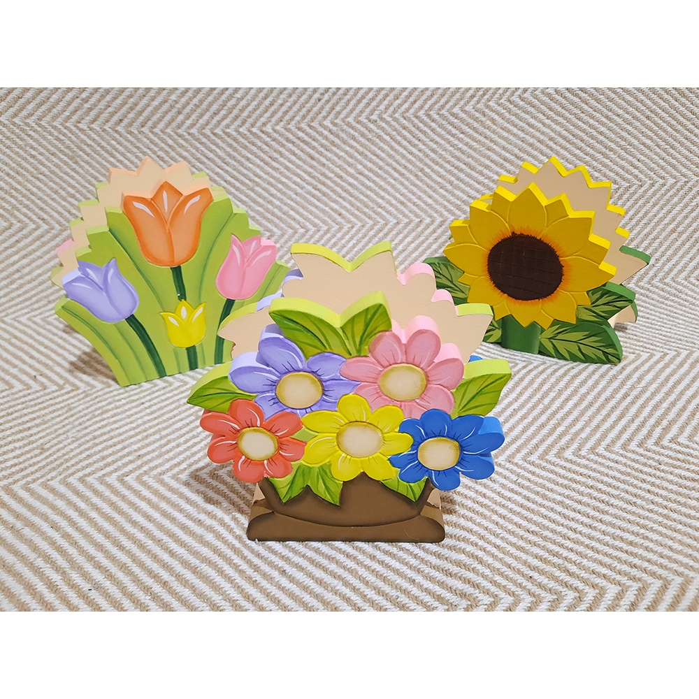 Flower on Pot Napkin Holder / Tissue Organizer Wooden MDF Hand Painted Lightly Carved