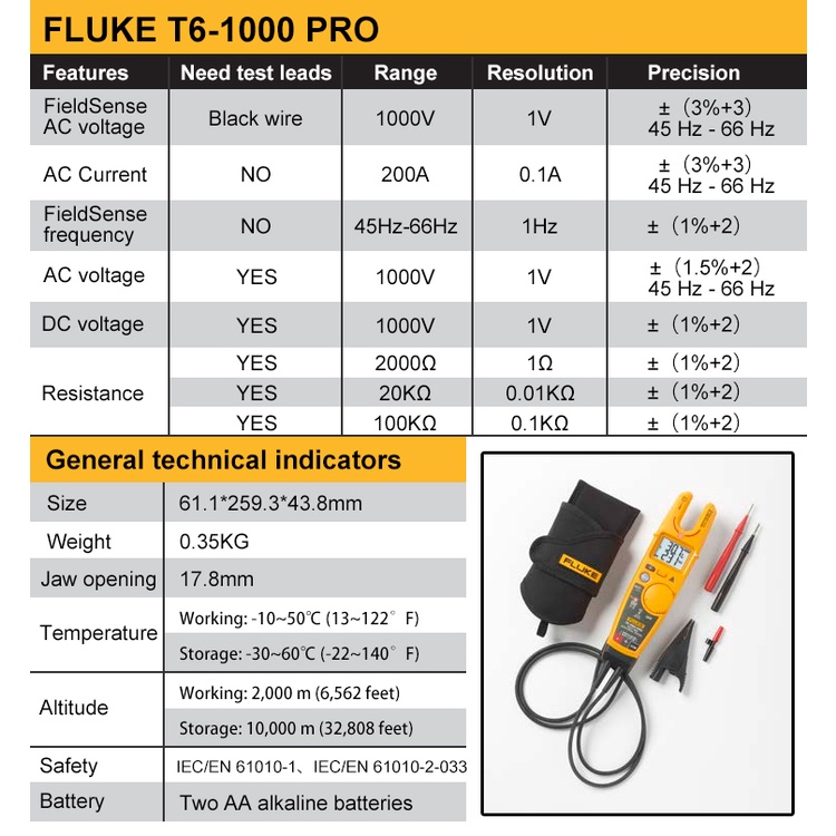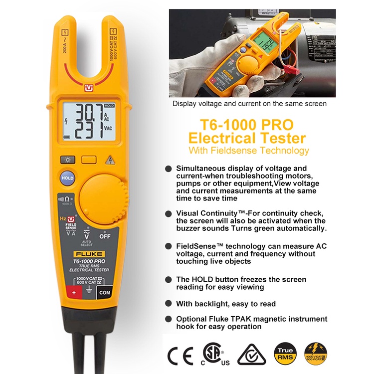 Fluke T6-1000 PRO Clamp Ammeters 1000V Non Contact Voltage Clamp Meter Continuous Current Electrical Tester True RMS