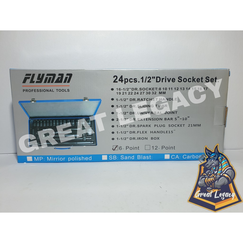 Flyman Tools 24pcs Socket Set 1/2 Drive: Complete Hexagonal Socket Kit with Ratchet and Power Handle