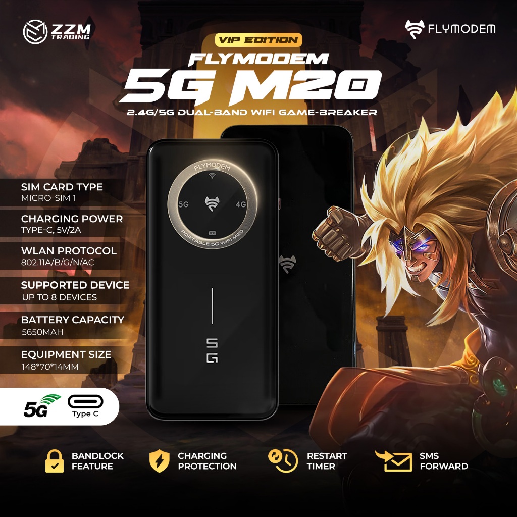 Flymodem 5G M20 VIP Edition WIFI Up to 8 devices 2.4G/5G Dual band Game-breaker 5650mAh ZZM Trading